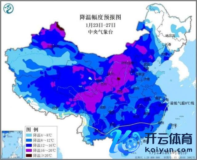 同期,最低气温 0 ℃线也将大幅南压,27 日至 28 日将抵达江南中部,西北、华北、东北大部最低气温宽广不及 -10 ℃,部分地区低于 -20 ℃。